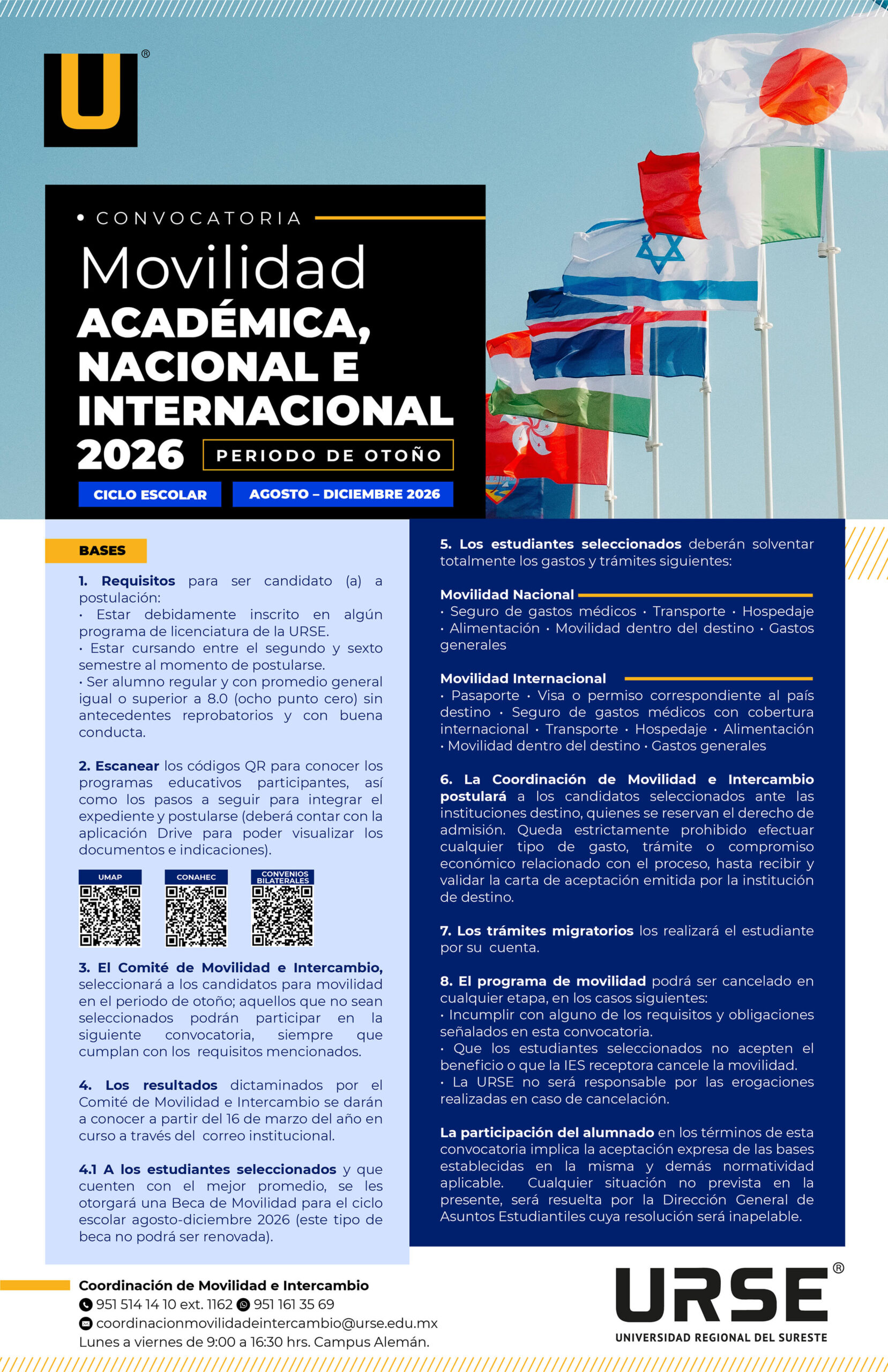 CONVOCATORIA MOVILIDAD ACADÉMICA, NACIONAL E INTERNACIONAL 2026