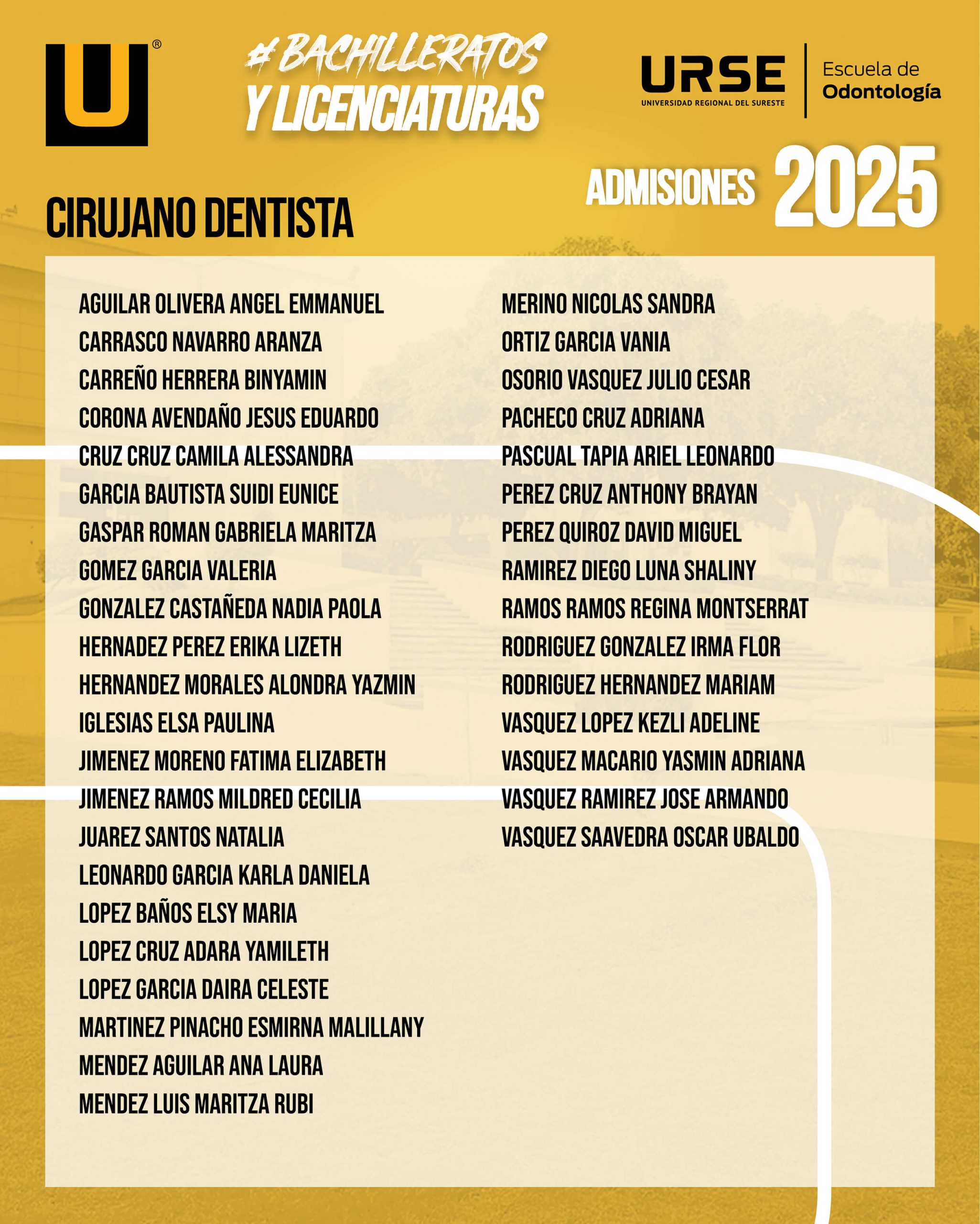 LISTA DE ADMISIÓN - 05 DE MAYO DE 2025