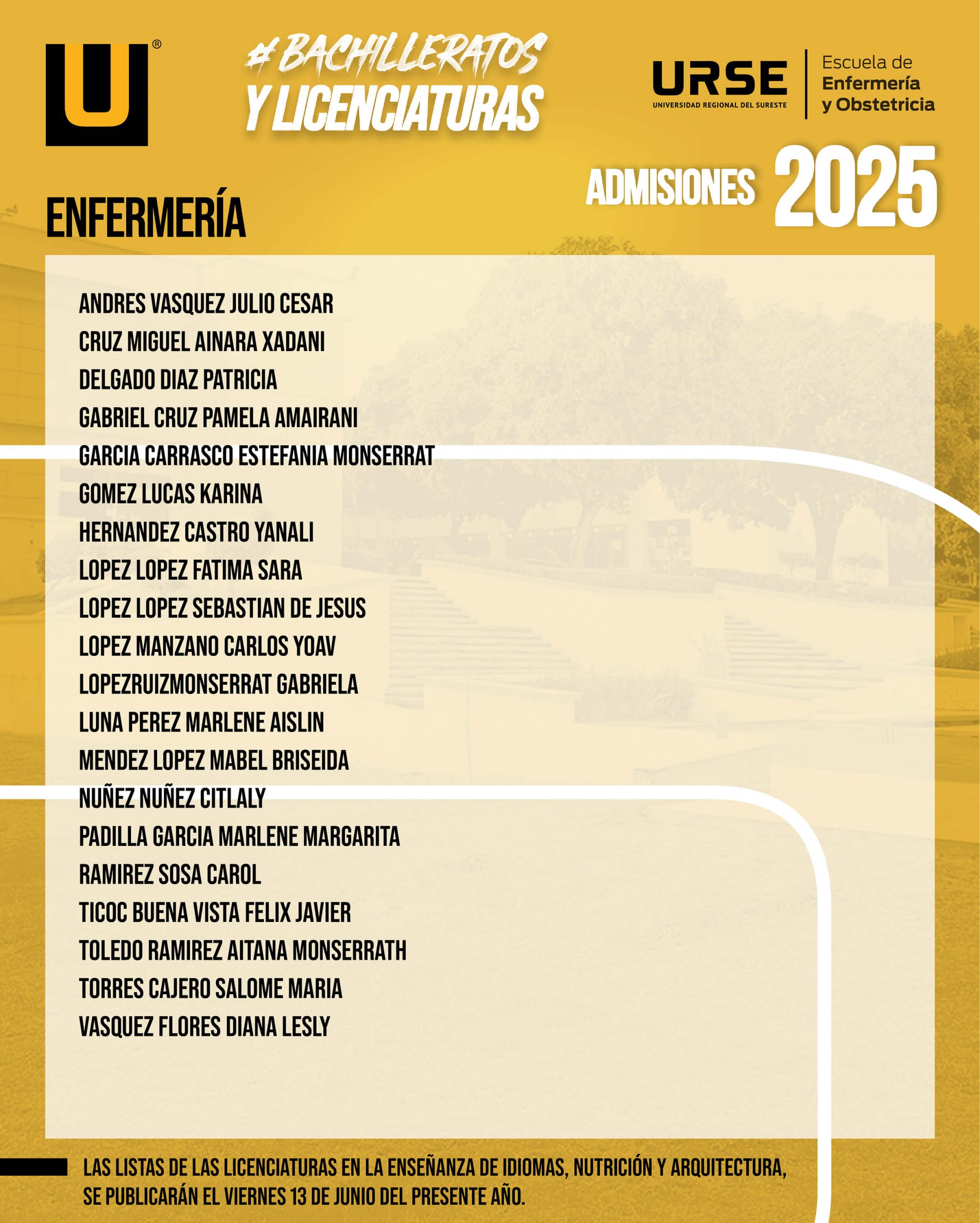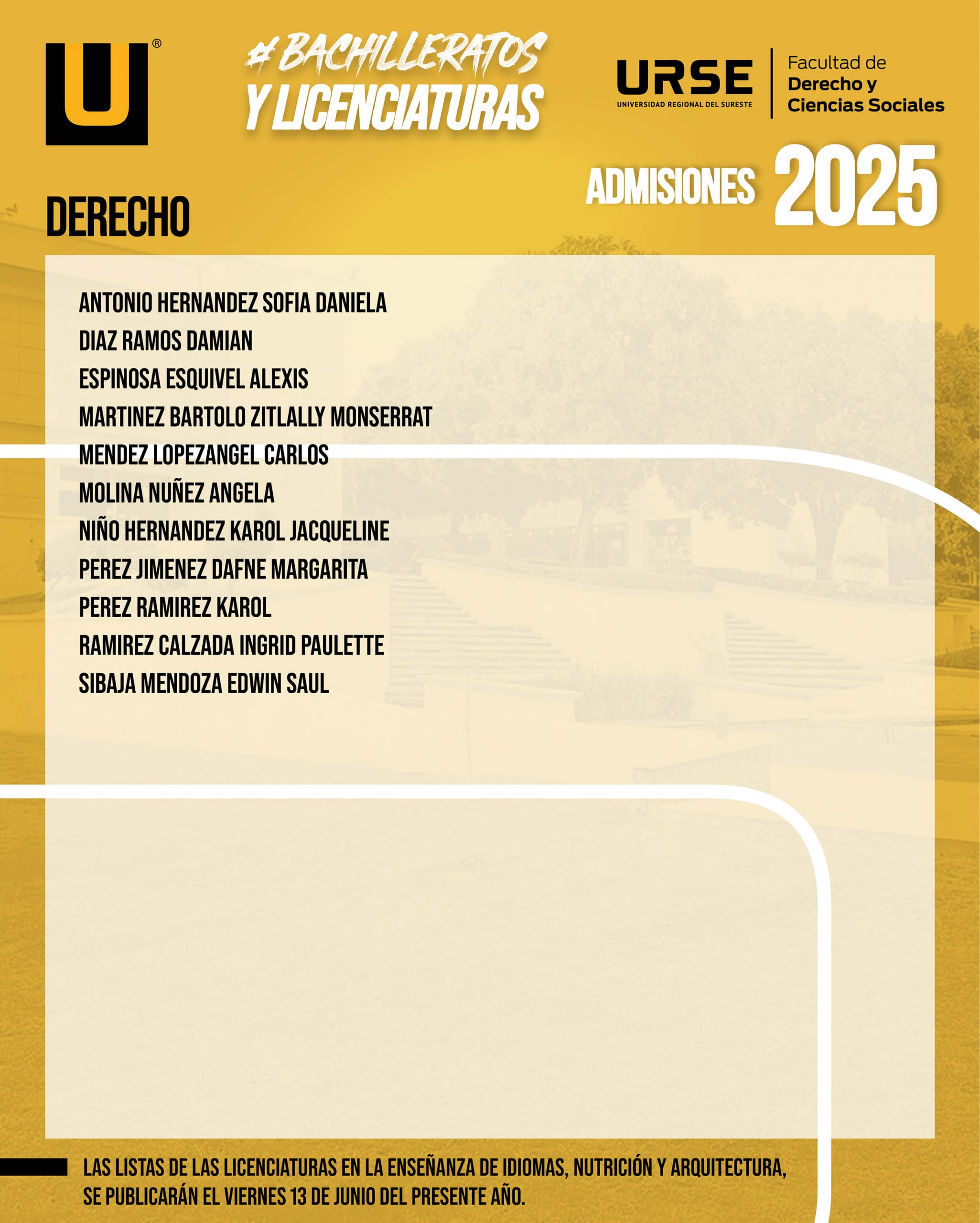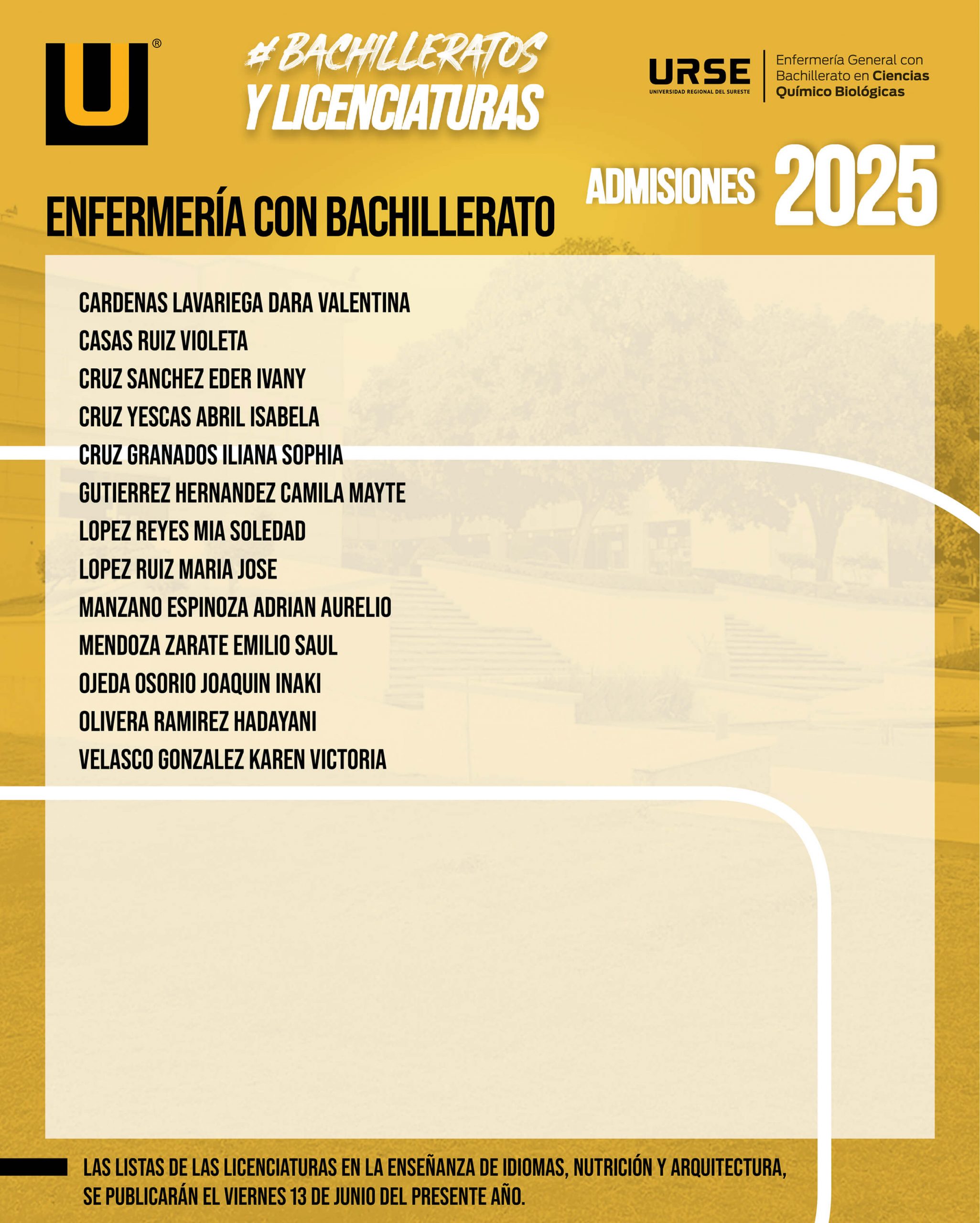 LISTA DE ADMISIÓN - 09 DE JUNIO DE 2025