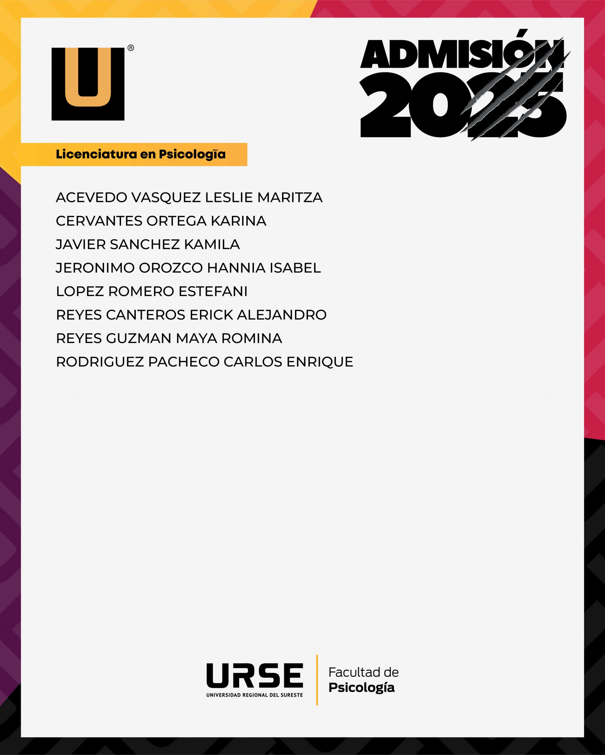 LISTA DE ADMISIÓN - 13 DE ENERO DE 2025