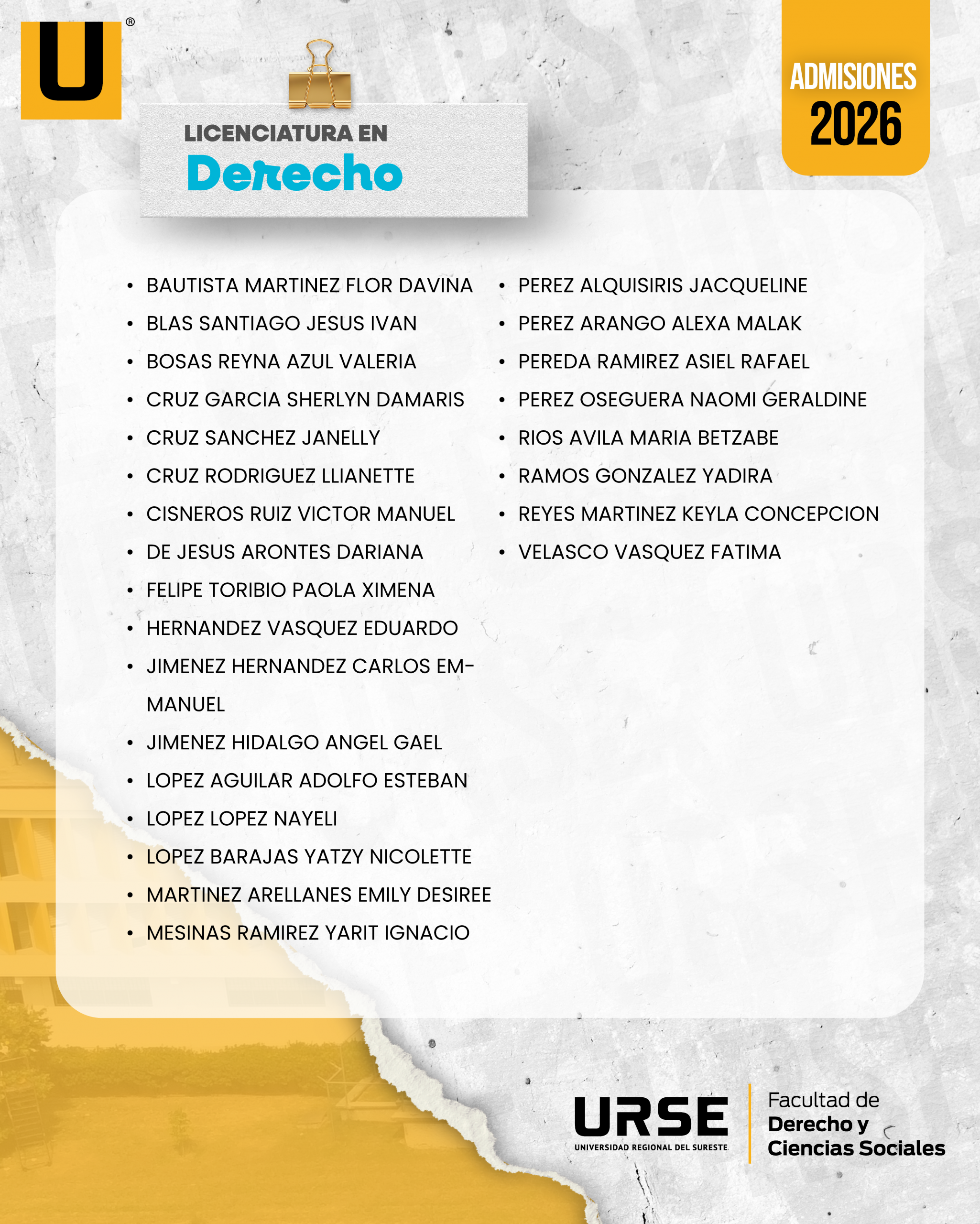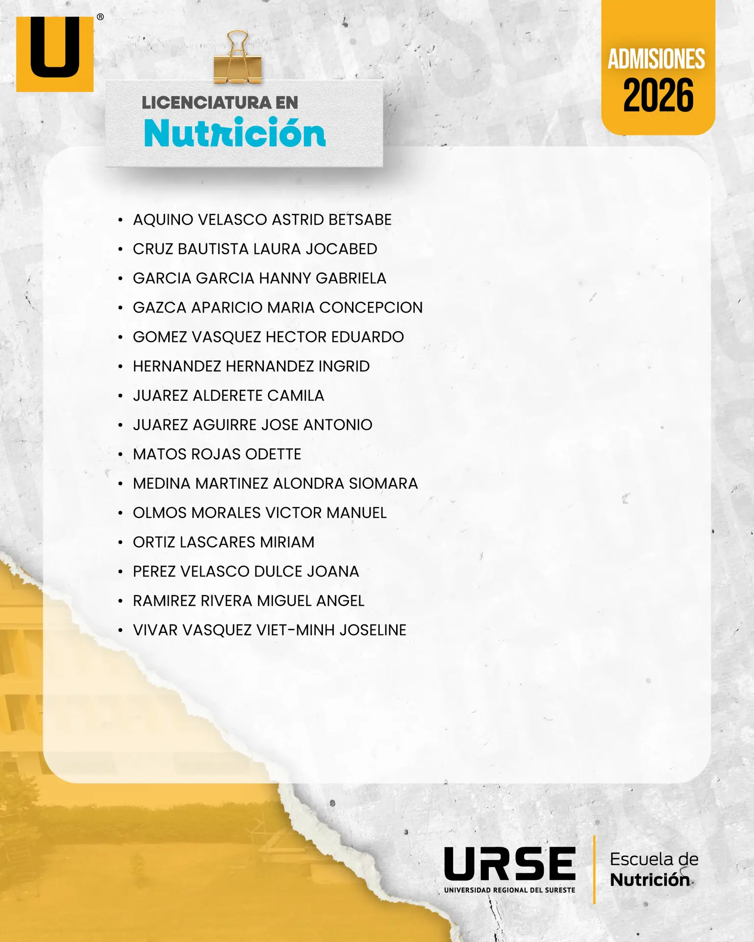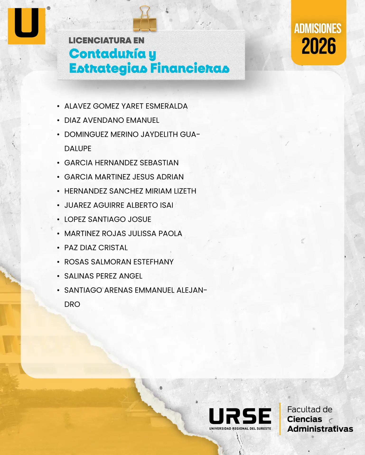 LISTA DE ADMISIÓN - 13 DE FEBRERO DE 2026