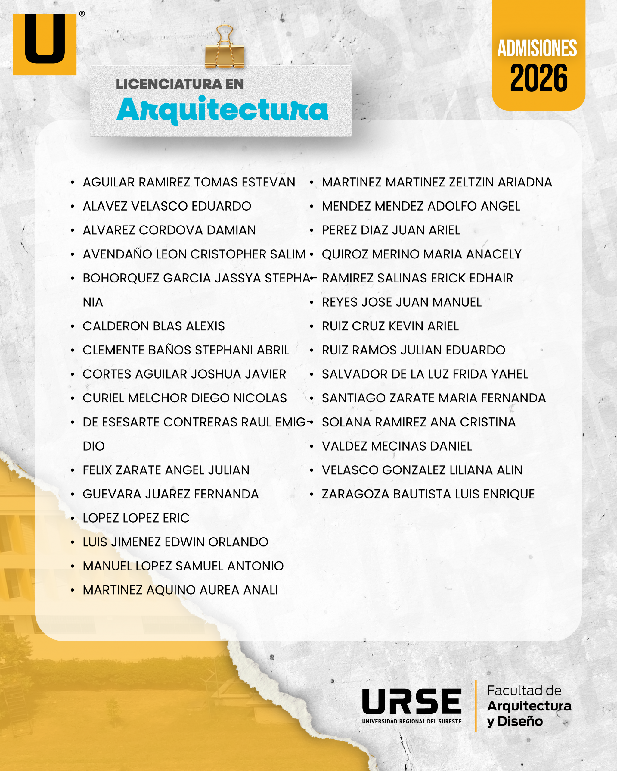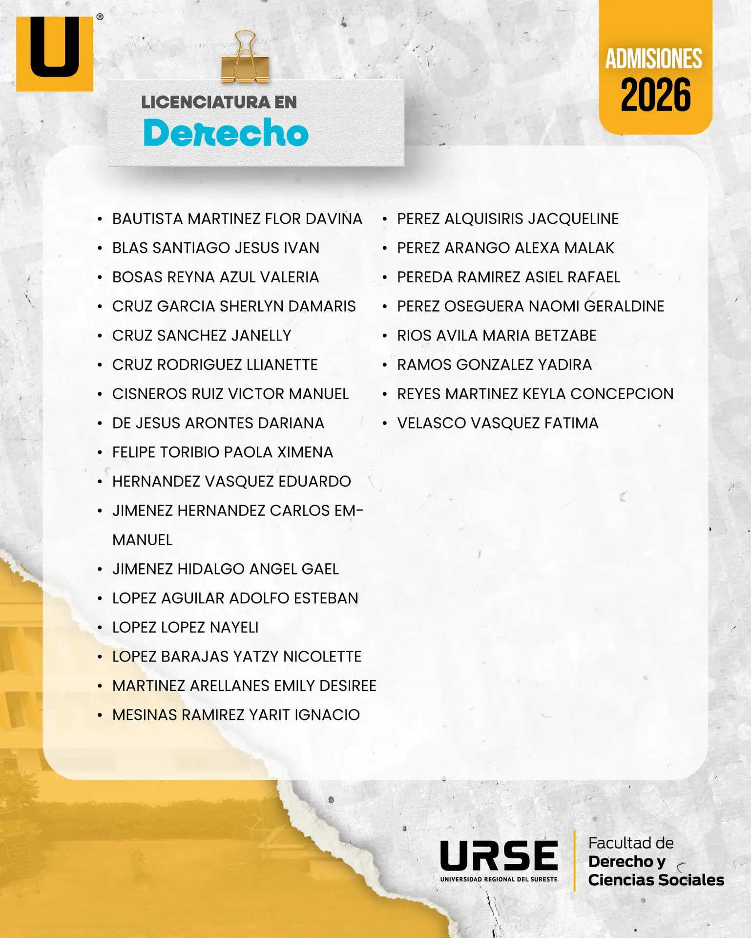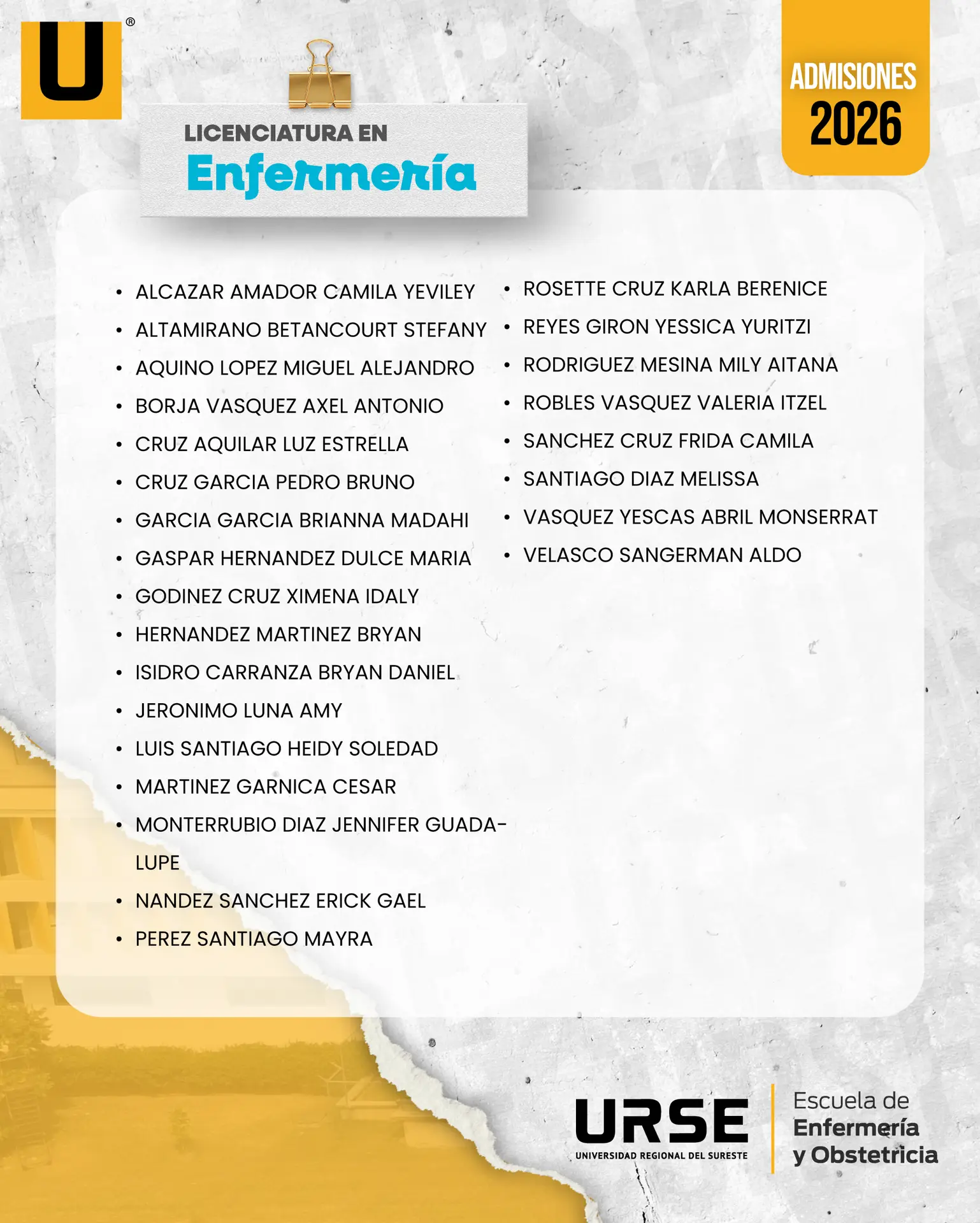 LISTA DE ADMISIÓN - 13 DE FEBRERO DE 2026