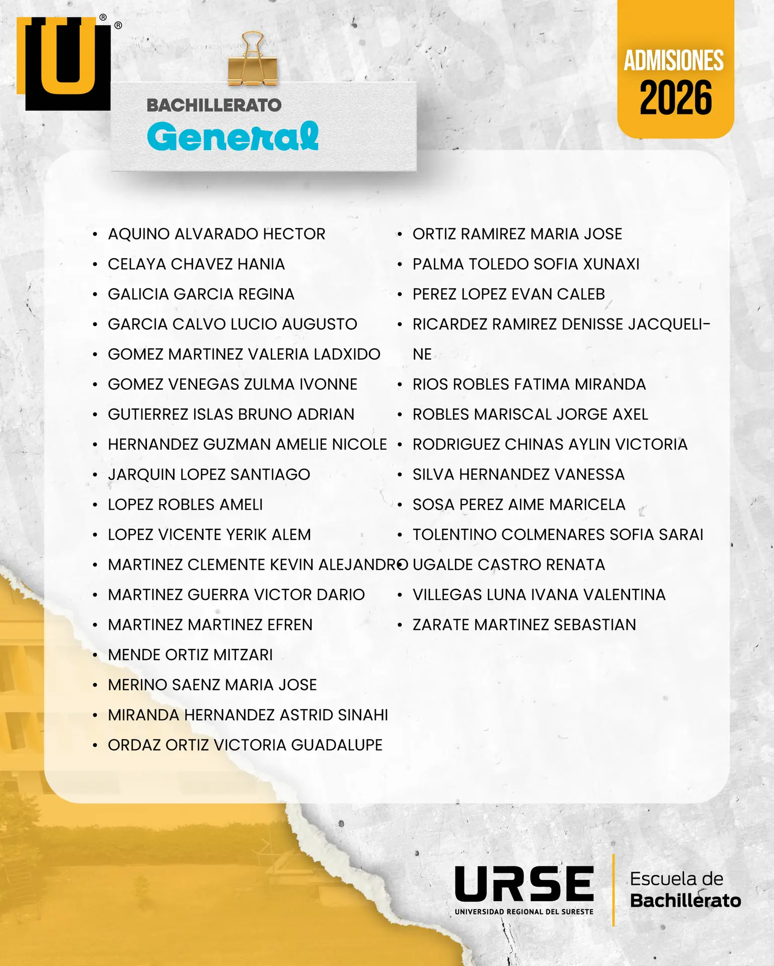 Publicación de Resultados 13 de Febrero 2026 – Licenciaturas y Bachilleratos