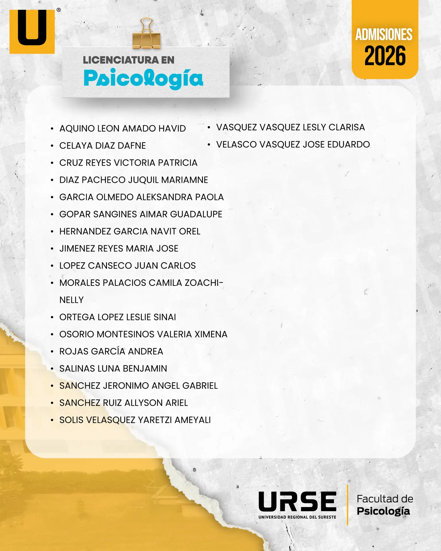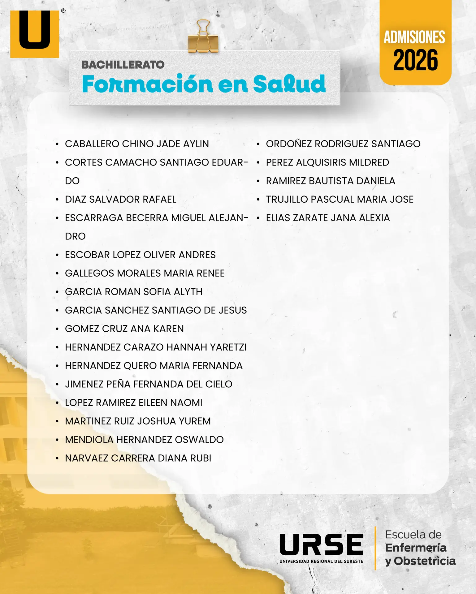 NOTA: SI TU NOMBRE APARECE EN ESTAS LISTAS REVISA TU CORREO ELECTRÓNICO CON EL QUE TRAMITASTE TU FICHA, YA QUE RECIBIRÁS LAS CONTRASEÑAS PARA CONTINUAR CON TU PROCESO ¡APROVECHA LOS DESCUENTOS QUE POR PRONTA INSCRIPCIÓN TE OFRECEMOS!
