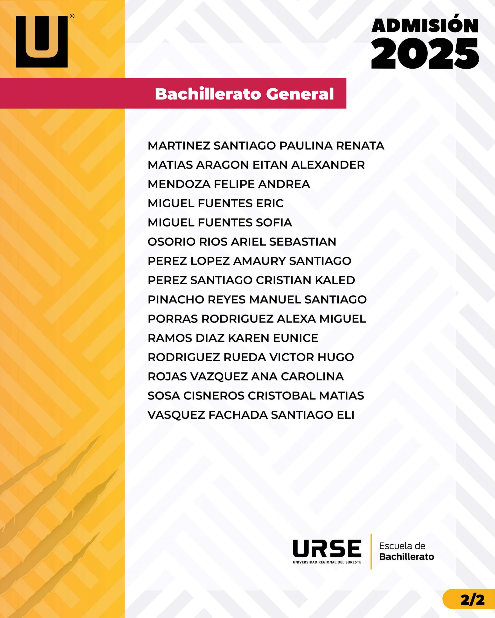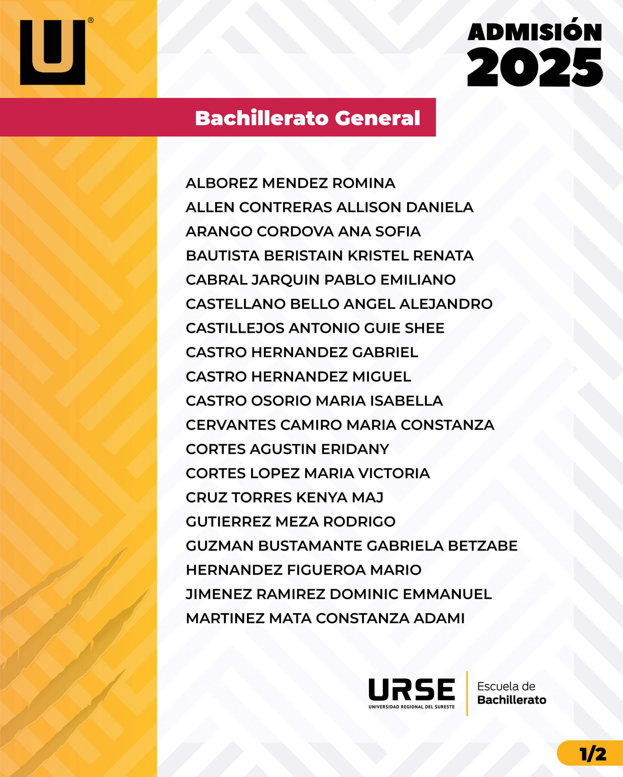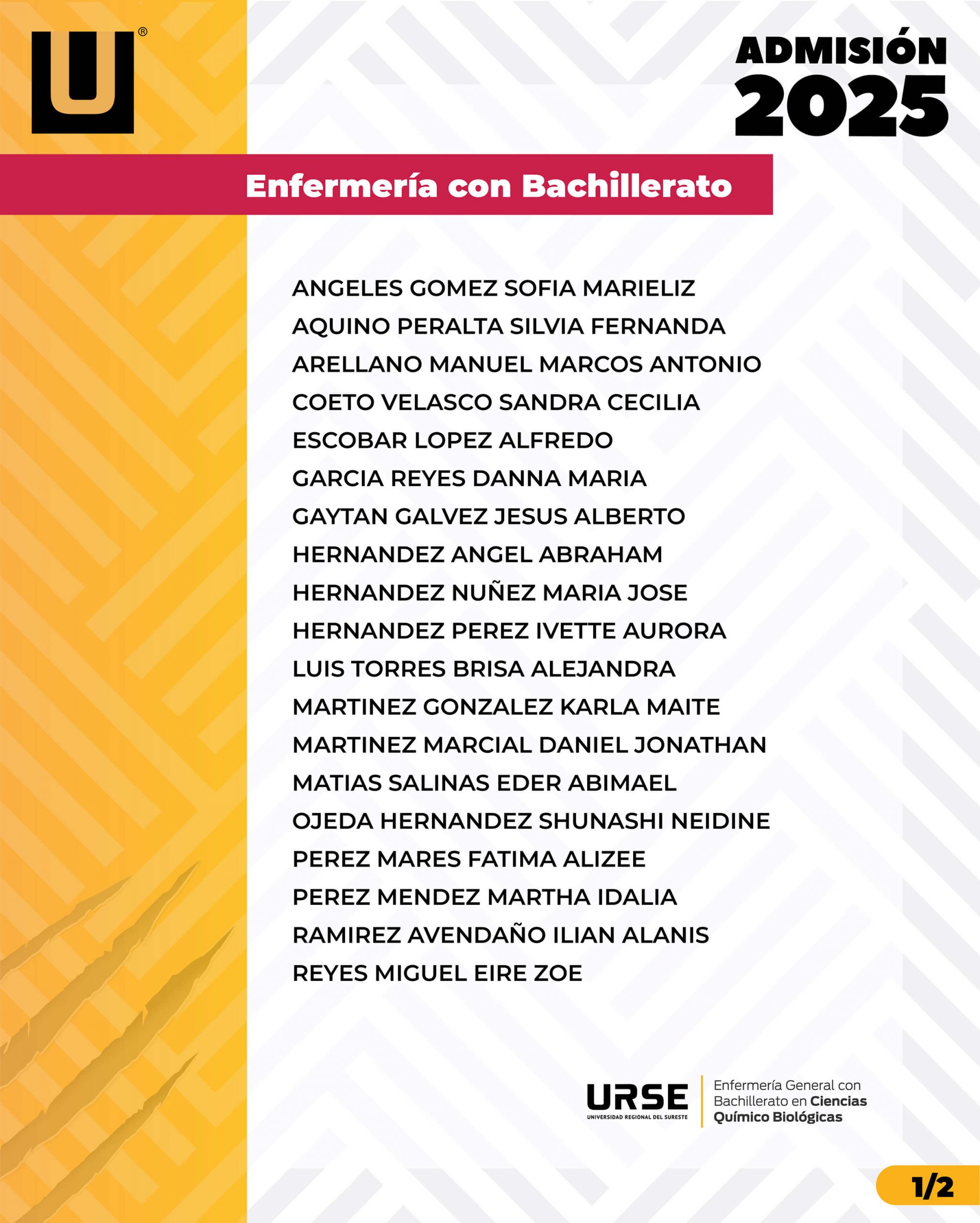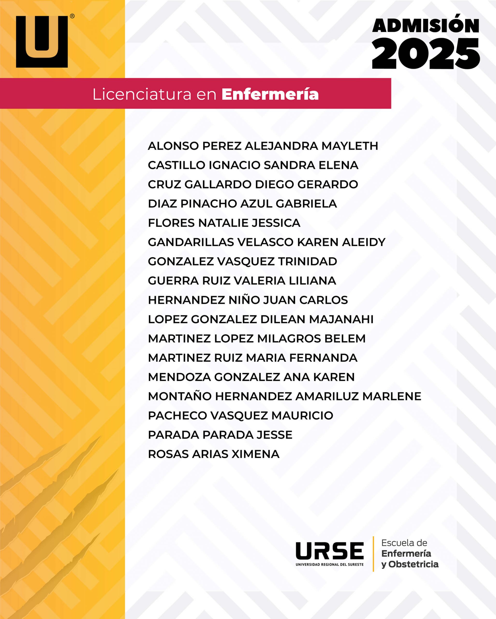 LISTA DE ADMISIÓN - 18 DE MARZO DE 2025